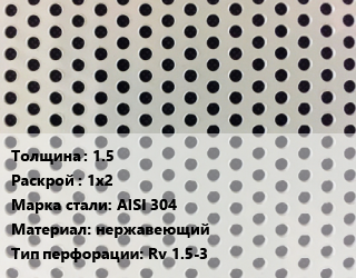 Лист перфорированный 1.5 1х2 Марка: AISI 304 нержавеющий Rv 1.5-3