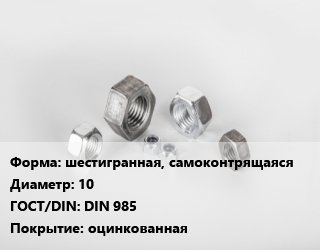 Гайка шестигранная, самоконтрящаяся D=10 DIN 985 оцинкованная, шт, 10,8, 1.25 цена от 13.84 ₽ / кг, где купить, условия доставки в Ижевске и Республике Удмуртия области
