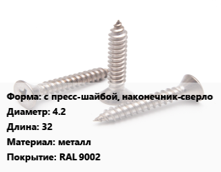 Саморез с пресс-шайбой, наконечник-сверло D=4.2 L=32 металл RAL 9002