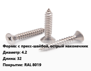 Саморез с пресс-шайбой, острый наконечник D=4.2 L=32 RAL 8019