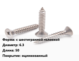 Саморез с шестигранной головкой D=6.3 L=50 оцинкованный, кг цена от 20.27 ₽ / кг, где купить, условия доставки в Ижевске и Республике Удмуртия области