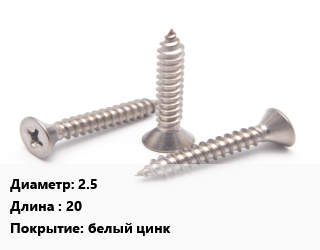 Саморез 2.5 L=20 белый цинк, упаковка 36000 шт, универсальный цена от 3 162 ₽ / кг, где купить, условия доставки в Ижевске и Республике Удмуртия области