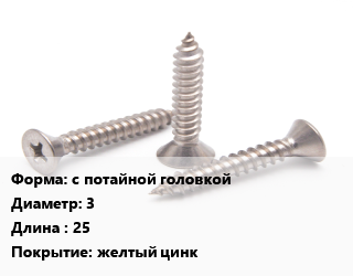 Саморез с потайной головкой D=3 L=25 желтый цинк, упаковка 70 шт цена от 67.5 ₽ / кг, где купить, условия доставки в Ижевске и Республике Удмуртия области