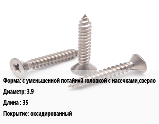Саморез с уменьшенной потайной головкой с насечками,сверло D=3.9 L=35 оксидированный