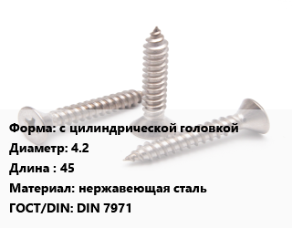 Саморез с цилиндрической головкой D=4.2 L=45 нержавеющая сталь ГОСТ: DIN 7971, шт цена По запросу где купить, условия доставки в Ижевске и Республике Удмуртия области