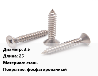 Саморез 3.5 L=25 сталь фосфатированный, упаковка 1000 шт, для гипсокартона, для дерева,для гипсокартона, для металла цена от 260.87 ₽ / кг, где купить, условия доставки в Ижевске и Республике Удмуртия области