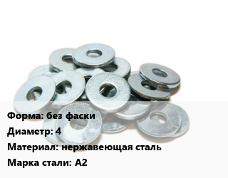 Шайба без фаски D=4 нержавеющая сталь Сталь: А2, кг, круглая, Китай,форма A цена от 237.75 ₽ / кг, где купить, условия доставки в Ижевске и Республике Удмуртия области
