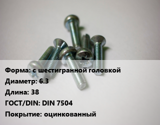 Винт с шестигранной головкой 6.3х38 DIN 7504 оцинкованный