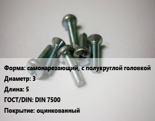 Винт самонарезающий, с полукруглой головкой 3х5 DIN 7500 оцинкованный, 4.8, цена за шт, кг цена По запросу где купить, условия доставки в Ижевске и Республике Удмуртия области