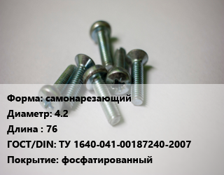 Винт самонарезающий 4.2х76 ТУ 1640-041-00187240-2007 фосфатированный