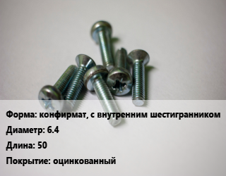 Винт конфирмат, с внутренним шестигранником 6.4х50 оцинкованный, цена за шт, кг цена от 12.6 ₽ / кг, где купить, условия доставки в Ижевске и Республике Удмуртия области