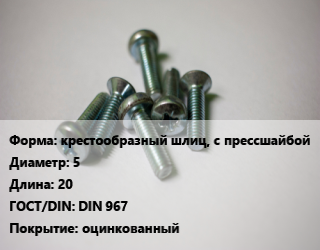 Винт крестообразный шлиц, с прессшайбой 5х20 DIN 967 оцинкованный