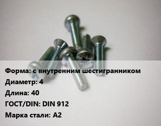 Винт с внутренним шестигранником 4х40 DIN 912 Сталь: A2, цена за шт, кг цена от 16.38 ₽ / кг, где купить, условия доставки в Ижевске и Республике Удмуртия области