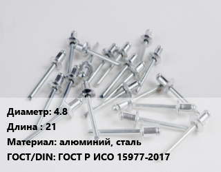 Заклепка 4.8х21 алюминий, сталь ГОСТ: ГОСТ Р ИСО 15977-2017