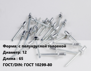 Заклепка с полукруглой головкой 12х65 ГОСТ: ГОСТ 10299-80