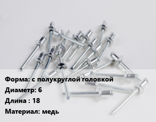 Заклепка с полукруглой головкой 6х18 медь