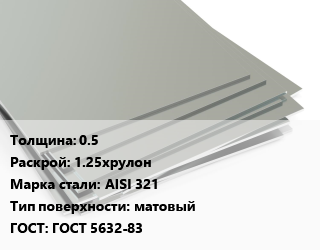 Лист нержавеющий 0.5 1.25хрулон Сталь: AISI 321 Тип:матовый ГОСТ 5632-83