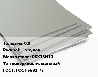Лист нержавеющий 0.8 1хрулон Сталь: 08Х18Н10 Тип:матовый ГОСТ 5582-75