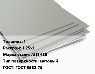 Лист нержавеющий 1 1.25хL Сталь: AISI 439 Тип:матовый ГОСТ 5582-75