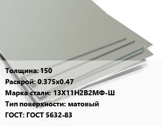 Лист нержавеющий 150 0.375х0.47 Сталь: 13Х11Н2В2МФ-Ш Тип:матовый ГОСТ 5632-83